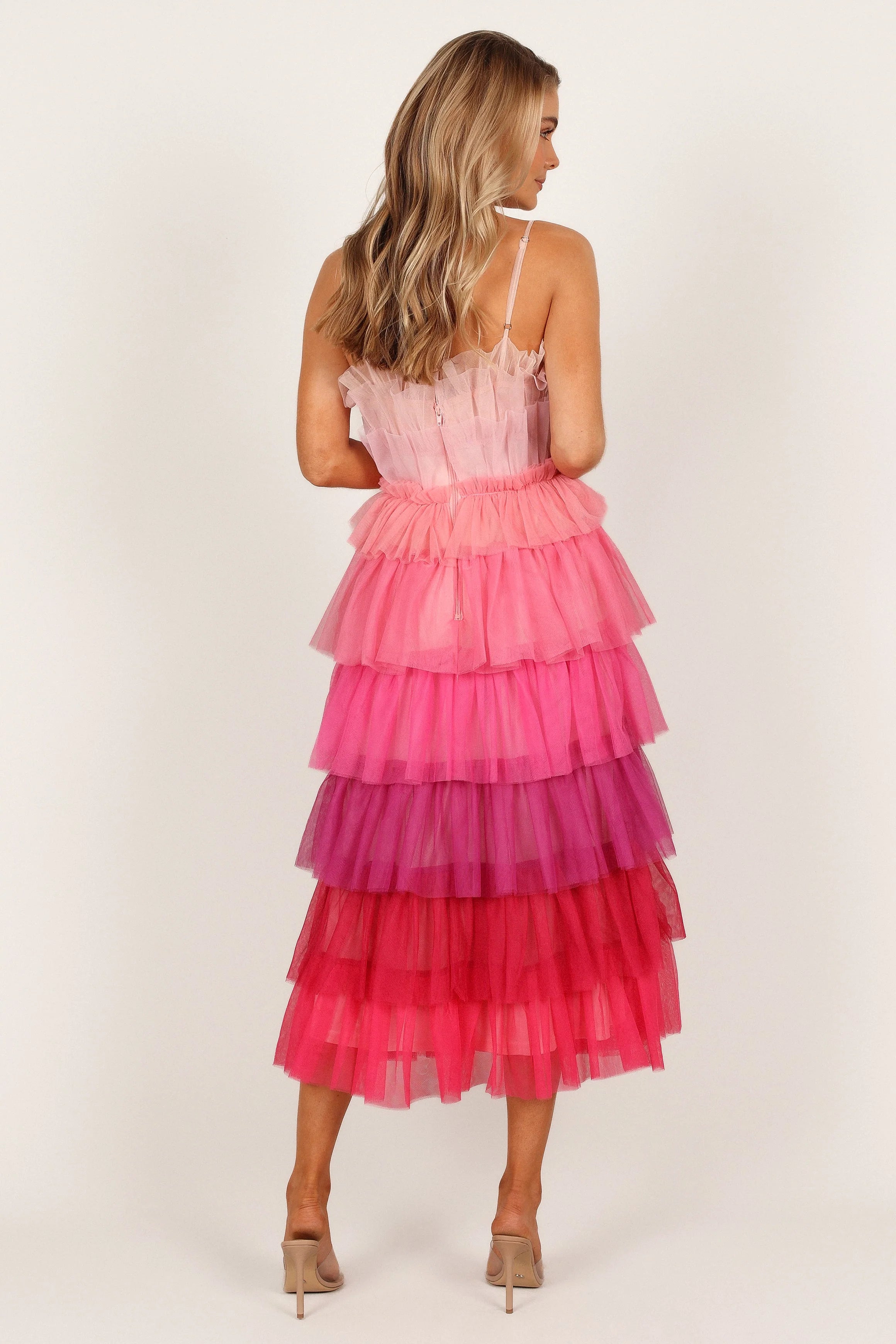 DETAILS Every girl needs a tulle dress in her wardrobe, and this one is perfect for that special occasion. With a square neckline and delicate thin tulle adjustable shoulder straps, you'll look like the belle of the ball as you twirl in your tulle dress.