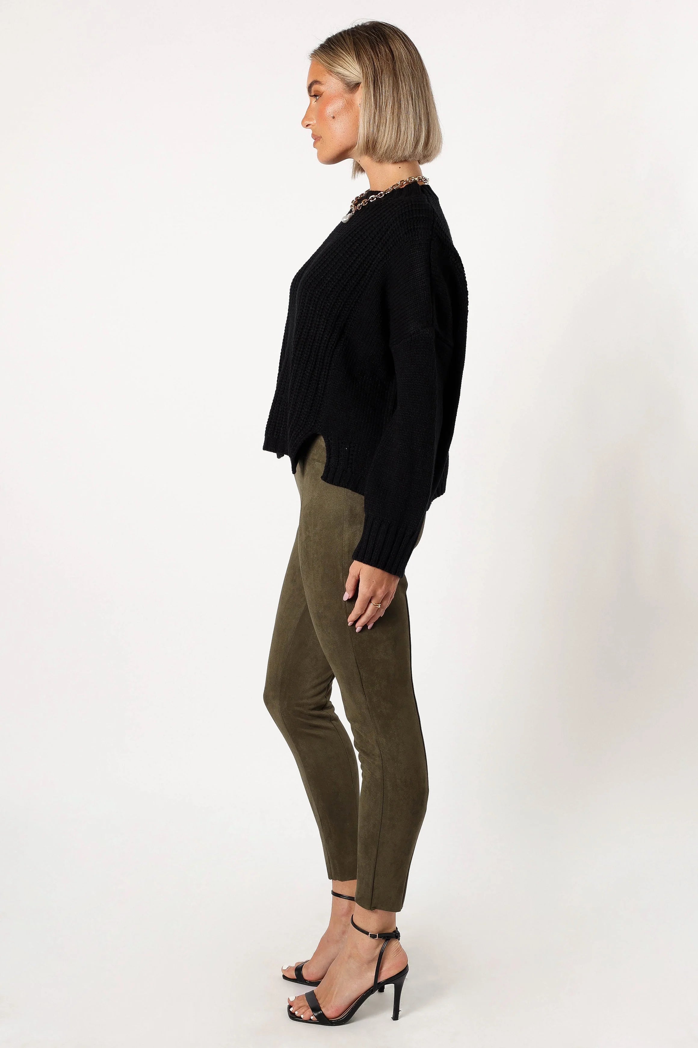DETAILS These pants offer a stylish legging aesthetic, coupled with the luxurious feel of soft suede. The elasticised waistband ensures a perfect fit, providing you with an effortless blend of functionality and fashion. Elevate your wardrobe with these sophisticated leggings that bring together comfort and style in one seamless design.